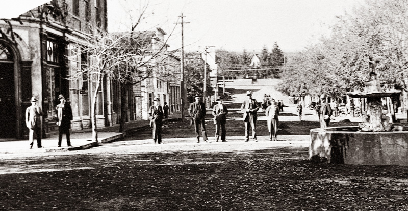 Farmers Bnak of Weston on the left - Fountain monument on the right.