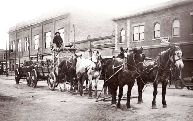 Six-horse Freight Team pulling two wagons - Pendleton, Oregon