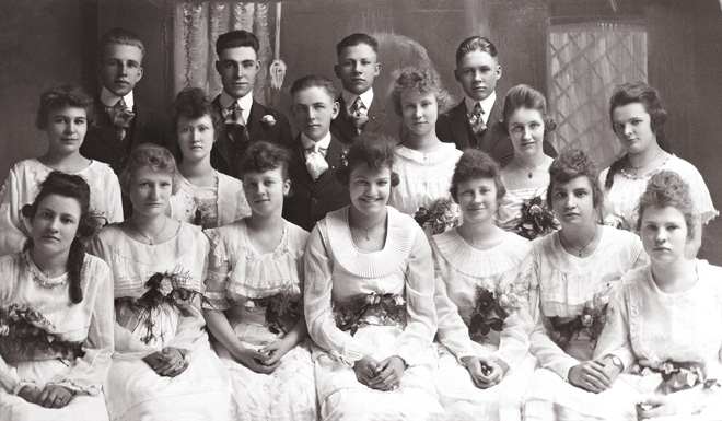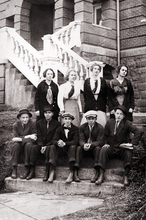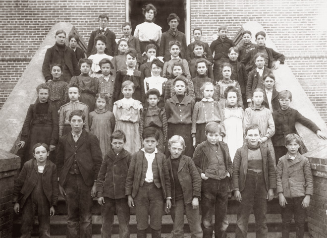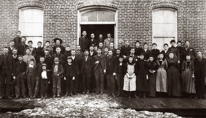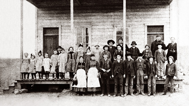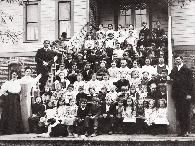 Teacher & Students at old schoolhouse - 1904 - W-361-3