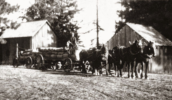 Hauling sacked wheat from Reed and Hawley Mountain to Weston - 1918