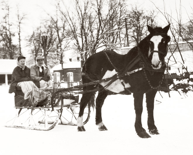 Ruby Hall Kirk with her horse-drawn sleigh -