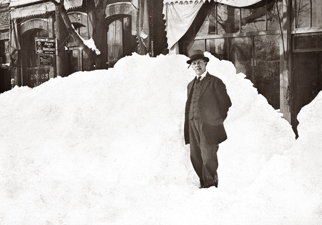 Snow Pile at O'Harra Store on Main Street - February 1916 - W-642-2a