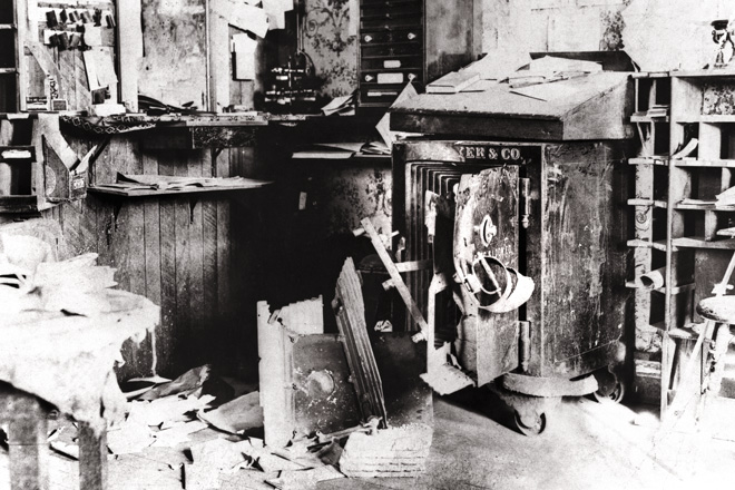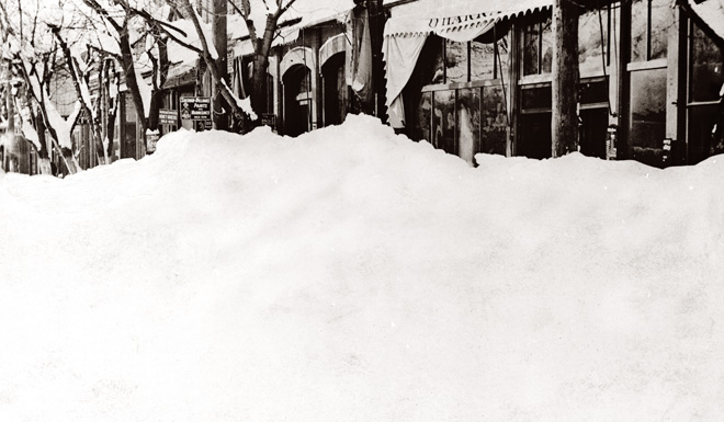 Snow Pile at O'Harra Store on Main Street - February 1916 - W-642-3